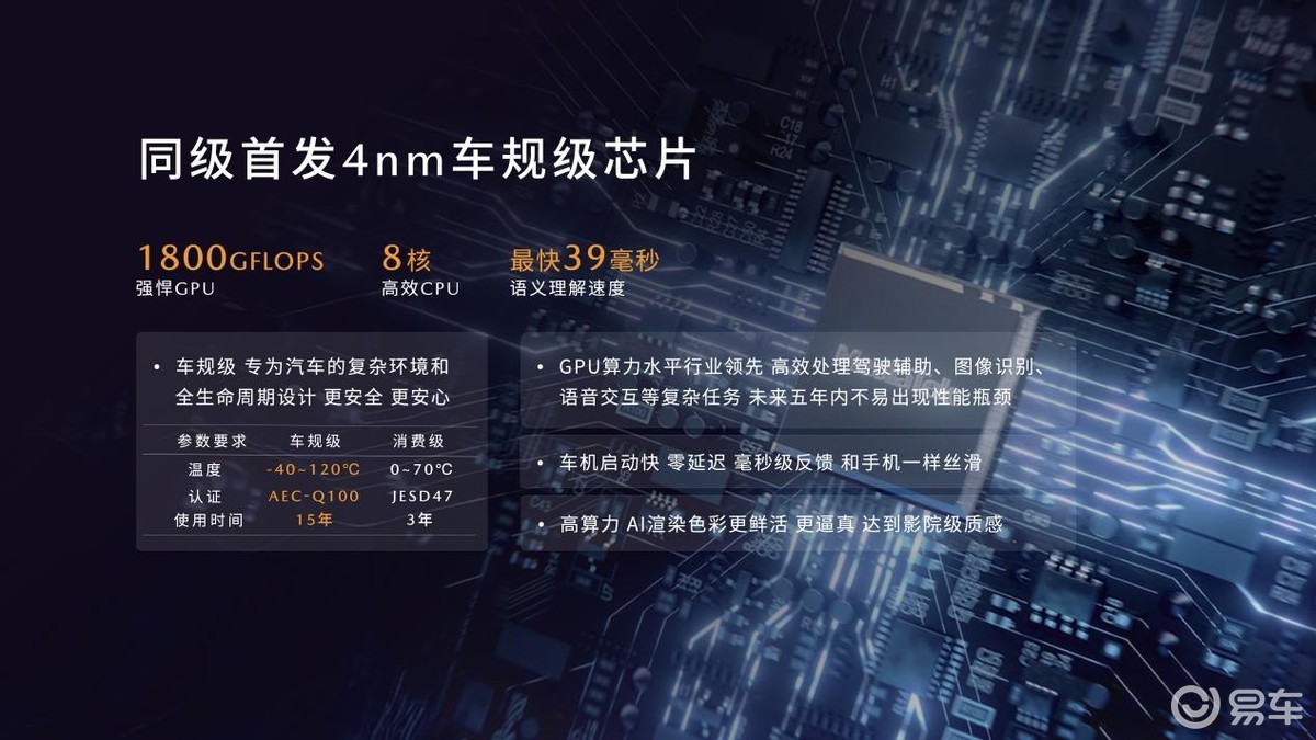 EZ-60 在智能领域亮点突出:同级首发 4nm 车规级芯片,语音响应仅 39 毫秒;26.45 英寸 5K 大屏 + 全球首发 100 英寸裸眼 3D HUD,兼具清晰度与科技感;还支持 “所指即所控” 交互、双 AI 大模型,覆盖 90% 高频场景。其智舱设计不堆砌配置,而是以 “场景化需求” 为导向,如 3D HUD 可化身影院,贴合用户休息娱乐需求,真正做到 “智能服务于人”。