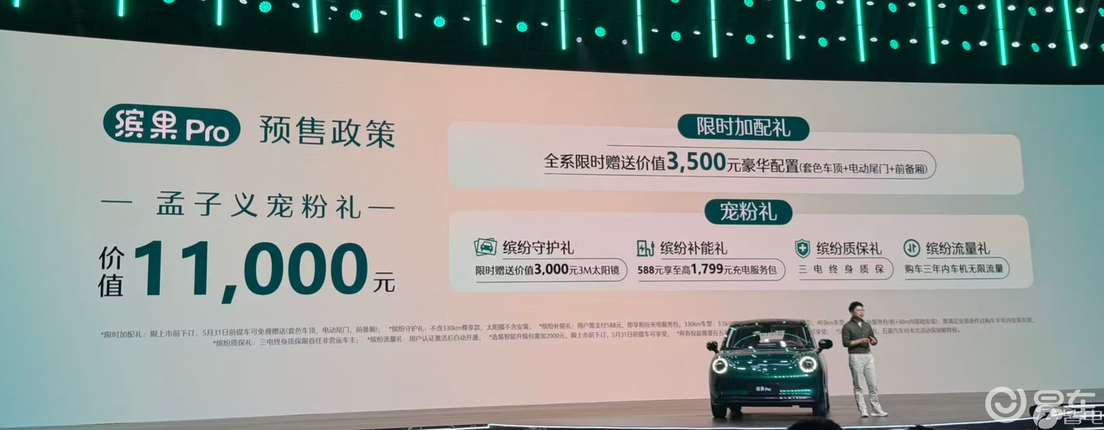 车身尺寸方面,新车长宽高为4050×1758×1580mm,轴距2560mm。外观方面,缤果Pro采用最新的简约复古设计语言。新车采用封闭式前脸,搭载复古造型圆形大灯,内部光带采用三段式设计。