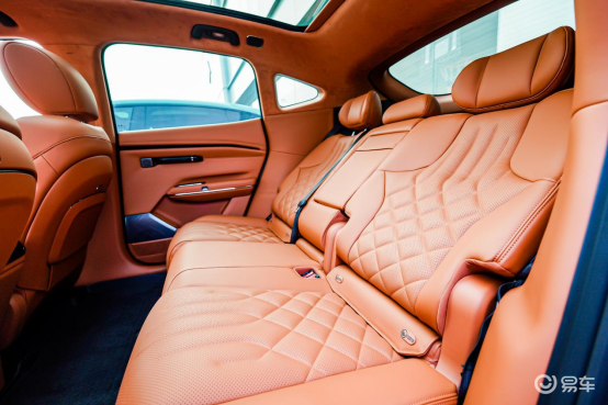 再一个,很多人看重的后排体验,昊铂HT 825 Pro也做的非常到位,像是老板键、小桌板、脚蹬、遮阳帘……这些都没有缺席,甚至这台车的后排座椅,还能一键躺平到143°,直接变成小沙发,平时上班的时候需要午休,就不用趴在办公室的桌子上,直接打开车里的空调,然后把座椅放平,或者打开副驾的零重力模式,缓解一下工作的疲劳。