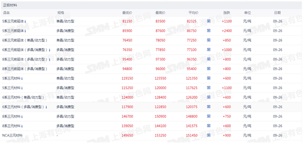 正极材料价格