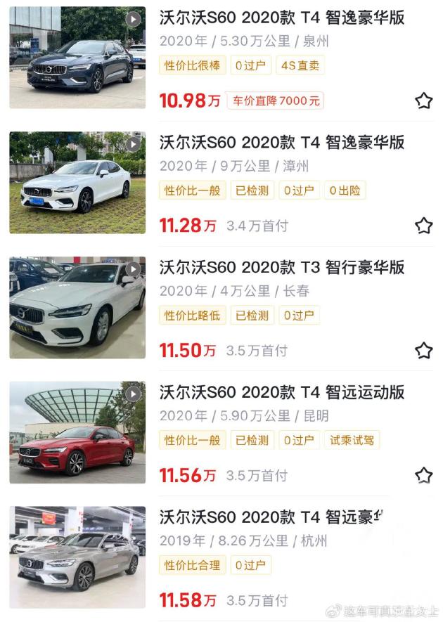 2020款T4动力的沃尔沃S60,当前二手车商报价普遍在11万元左右,实际成交价约为10万余元。一年行驶1万公里的车辆较多,2020款车况良好的车辆总里程通常在四五万公里左右,几乎等同于准新车。