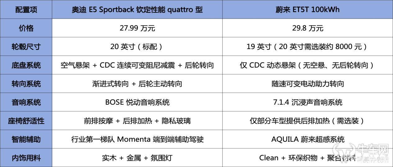 相比较而言,蔚来ET5T虽也有部分舒适配置,但多需选装(如后排加热、高级音响),而奥迪把这些高感知配置直接打包进主销车型,让用户落地即享完整豪华体验,无需加钱解锁。