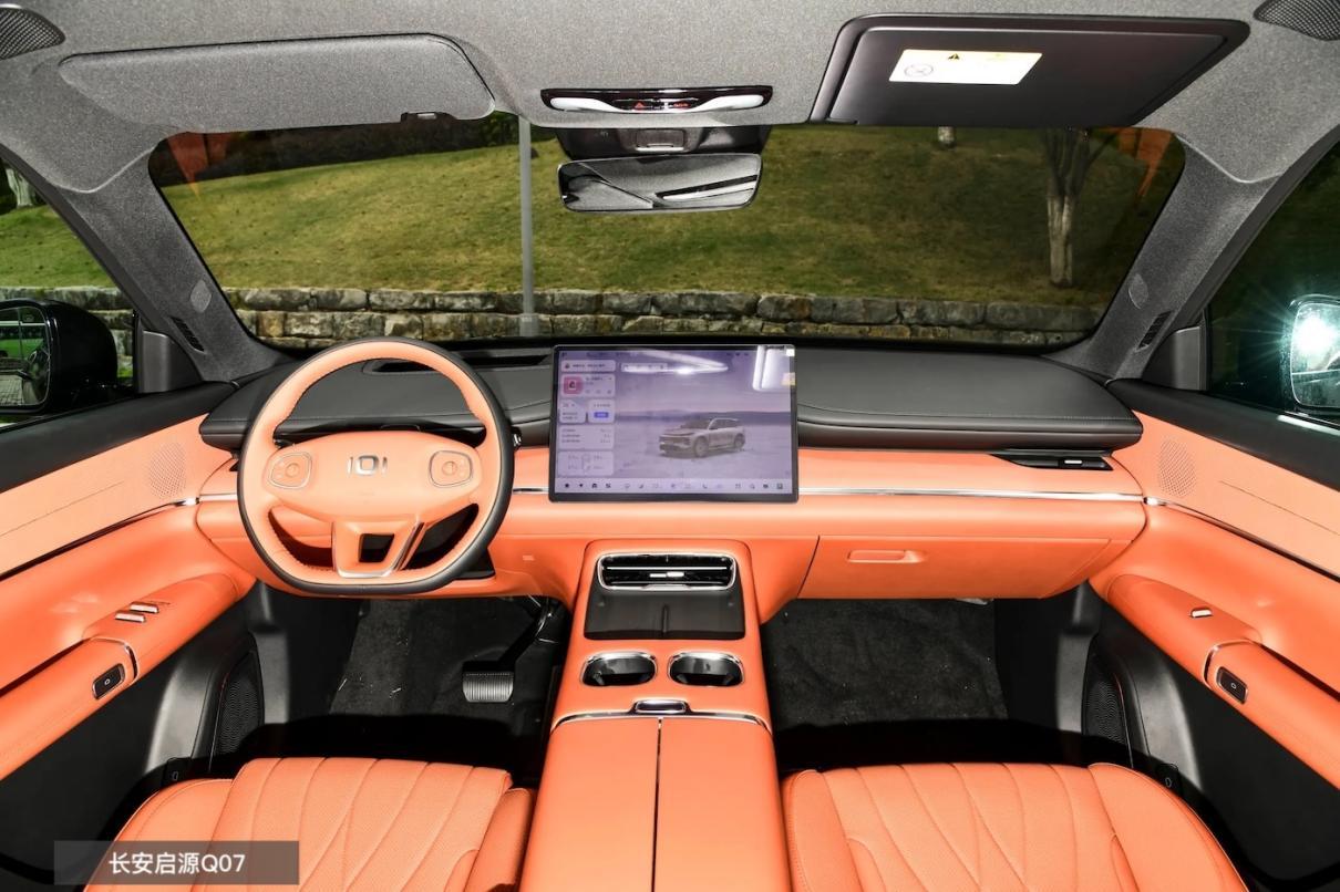 长安启源Q07的天枢智能座舱则有了49英寸AR-HUD+15.4英寸2.5K屏,后者采用了向日葵屏,在语音交互时还会进行左右偏转,不管是操作还是观看都要更方便且安全。