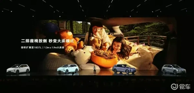 车辆配备601升的超大后备箱,行李箱地板下另设有储物格。二排座椅放倒后,车内空间可扩展至1837升,相当于1.3米乘以1.9米的大床房。前备箱容积为124升,可容纳20寸登机箱,并支持双击开启功能。