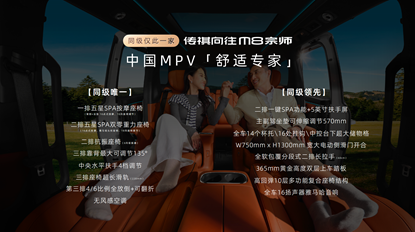 传祺向往M8宗师,是全家长途出行的“舒适专家”,日常城市通勤的“智能专家”,周末家庭聚会的“插混专家”,商务接待出行的“豪华专家”,更是守护全家出行的“安全专家”。毫无疑问,它就是25万级最值得推荐的豪华MPV。