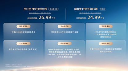 广汽传祺,宠粉到底!为感恩回馈用户,下订即可尊享六大购车礼包。包括:全品牌限时置换补贴1万元;针对广汽品牌车主,置换补贴再加码5000元;传祺M8、E9老车主再加码5000元,综合补贴高达2万元!不仅如此,选购激光雷达版的用户,还可免费享受价值25000元辅助驾驶功能包,以及至高300万元全场景智行保障。