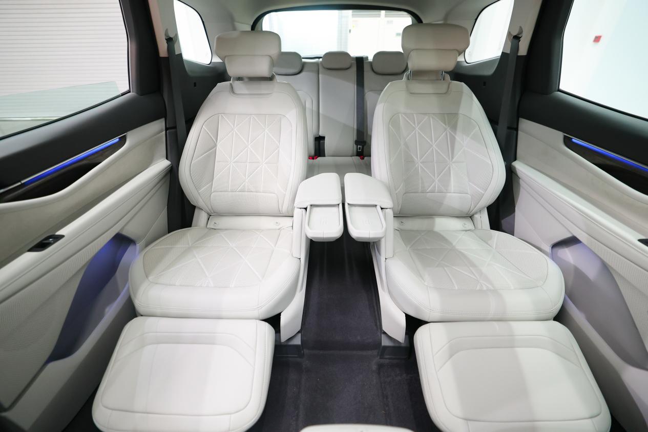 在座椅功能上,四驱至尊型(27.98万起)标配前排/二排加热通风,二排独立座椅,并且在2-2-3座椅布局下,二排座椅还支持三种模式,其中一键零重力模式,老人长途乘坐可一键躺平,冬天的时候再把加热功能开上,相当贴心。扶手集成无线充电,解决后排设备续航焦虑。