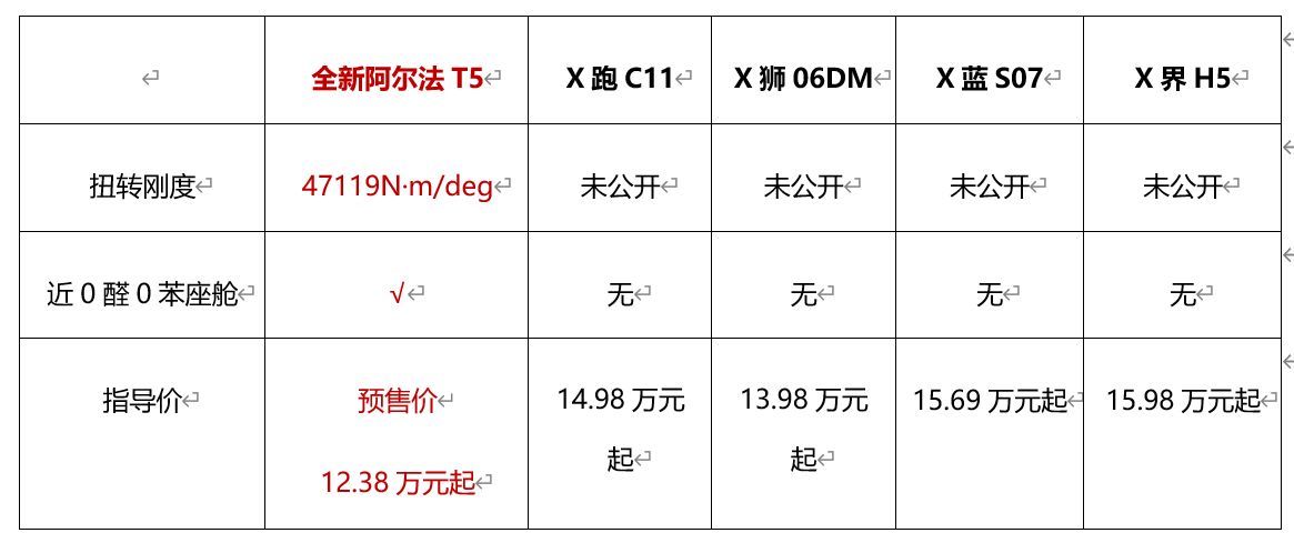 全新阿尔法T5采用1500MPa高强度热成型钢,高强钢及铝合金占比高达81%,扭转刚度达到了47,119N·m/deg,与之对比劳斯莱斯幻影的扭转刚度是40,000N·m/deg,“公路坦克”实至名归。