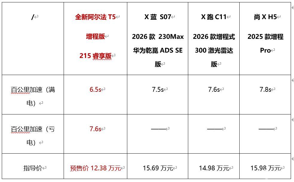 在家庭用户关心的动力方面,全新阿尔法T5增程版峰值功率200kW,峰值扭矩365N·m,满电零百加速仅6.5秒,即使在亏电状态下零百加速仍能保持7.6秒优异成绩,爬坡过坎、高速超车全部游刃有余。无论满电馈电,全新阿尔法T5性能随时在线,“快人一步”尽享百万级别澎湃驾控。