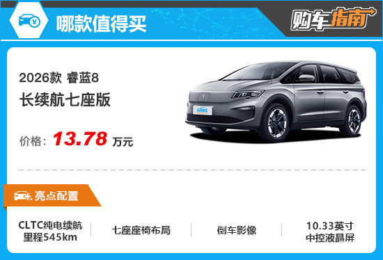 2026款睿蓝8的推出是一次精准升级,其强化了核心纯电续航里程表现,并保留了空间灵活性方面的优势,再加上极具杀伤力的价格,成为了很适合家庭用户的务实纯电MPV之选。那么新车应该如何选择?本期《购车指南》为您解答。