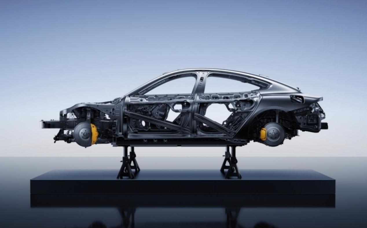 2026款小米SU7在车身结构上有一定的变化,虽然保留了原有的造型,只有一款重新设计的轮毂,以及新的车身颜色,但主要的变化集中在看不见的地方,比如采用2200Mpa的高强度钢,形成一个钢梁,放在A柱到C柱的地方,下图中黄颜色的部分,类似一个隐藏式的防滚架,同时四门的防撞梁也采用同样强度的钢材,在侧面碰撞中可以保护座舱完整,这两个设计可以应对钻进大卡车底部、翻滚等场景,不至于座舱挤压,不过实际效果如何,还要进一步的验证。