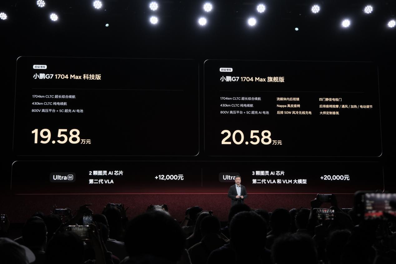 小鹏G7超级增程共推出2款车型,官方售价为19.58-20.58万元,另外,纯电Max旗舰版也推出2款车型,官方售价为19.58-20.58万元。新车同样主要针对配置和科技部分进行了提升,增程版将搭载1.5T发动机,纯电续航430km,综合续航可达1704km。