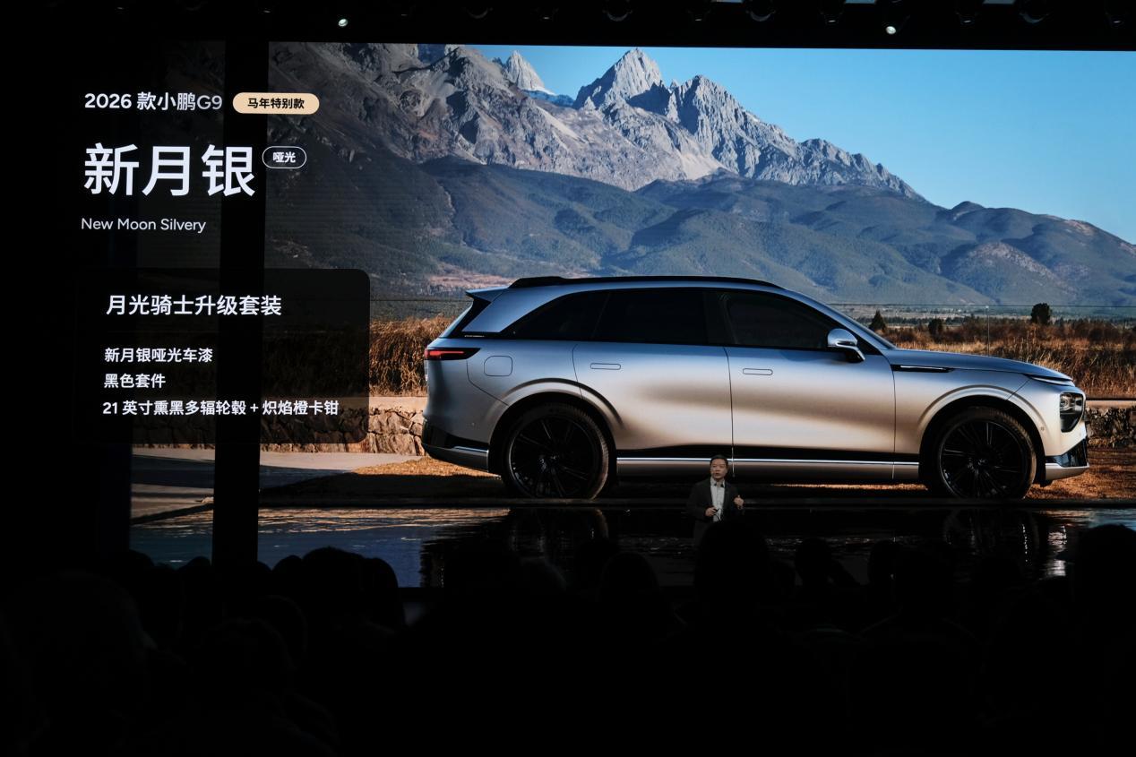2026款小鹏G9增加了一款“新月银”哑光配色,质感十分显高级,同时还有黑色套件和21寸熏黑轮毂以及橙色卡钳套装可选。内饰设计与老款保持一致,车机系统同样也进行了升级。