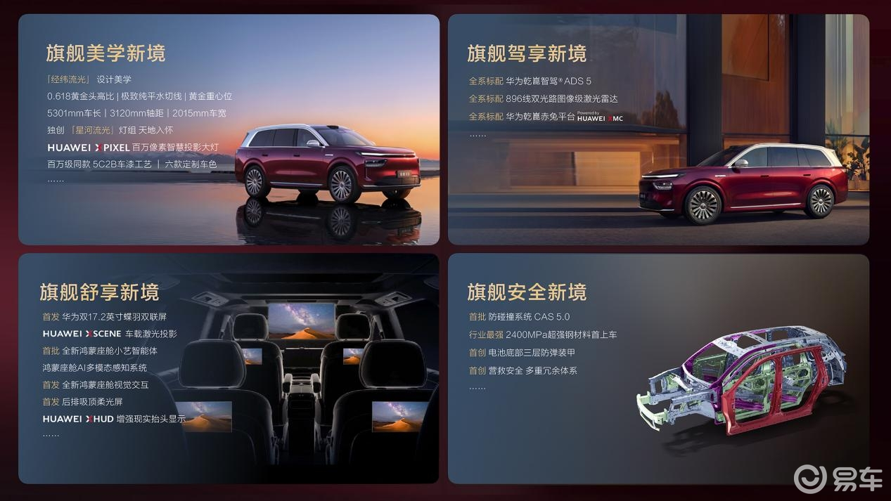 如果说空间与设计是旗舰的门面,安全、舒享、驾享三大维度的升级,才是奕境 X9 的核心竞争力。纵向来看,这款车实现了华为乾崑与东风汽车最新技术成果的量产落地,刷新了旗舰 SUV 的技术上限;横向对比同级高端六座 SUV,奕境 X9 的全系标配策略,也展现出十足的产品诚意。